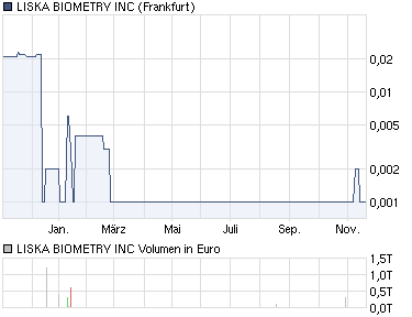 LISKA BIOMETRY INC Aktie wer solche Titel sucht kann nun auch diesen Titel auf watch nehmen tiefer kann es ja nun wirklich nicht mehr gehen eigentlich nur Richtung Nord wer Interesse daran hat,bitte