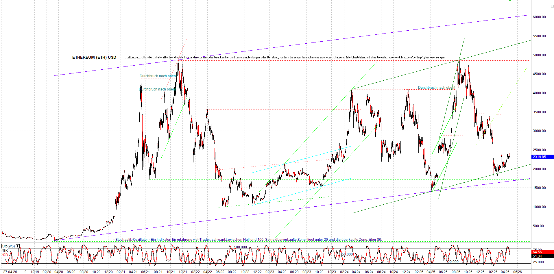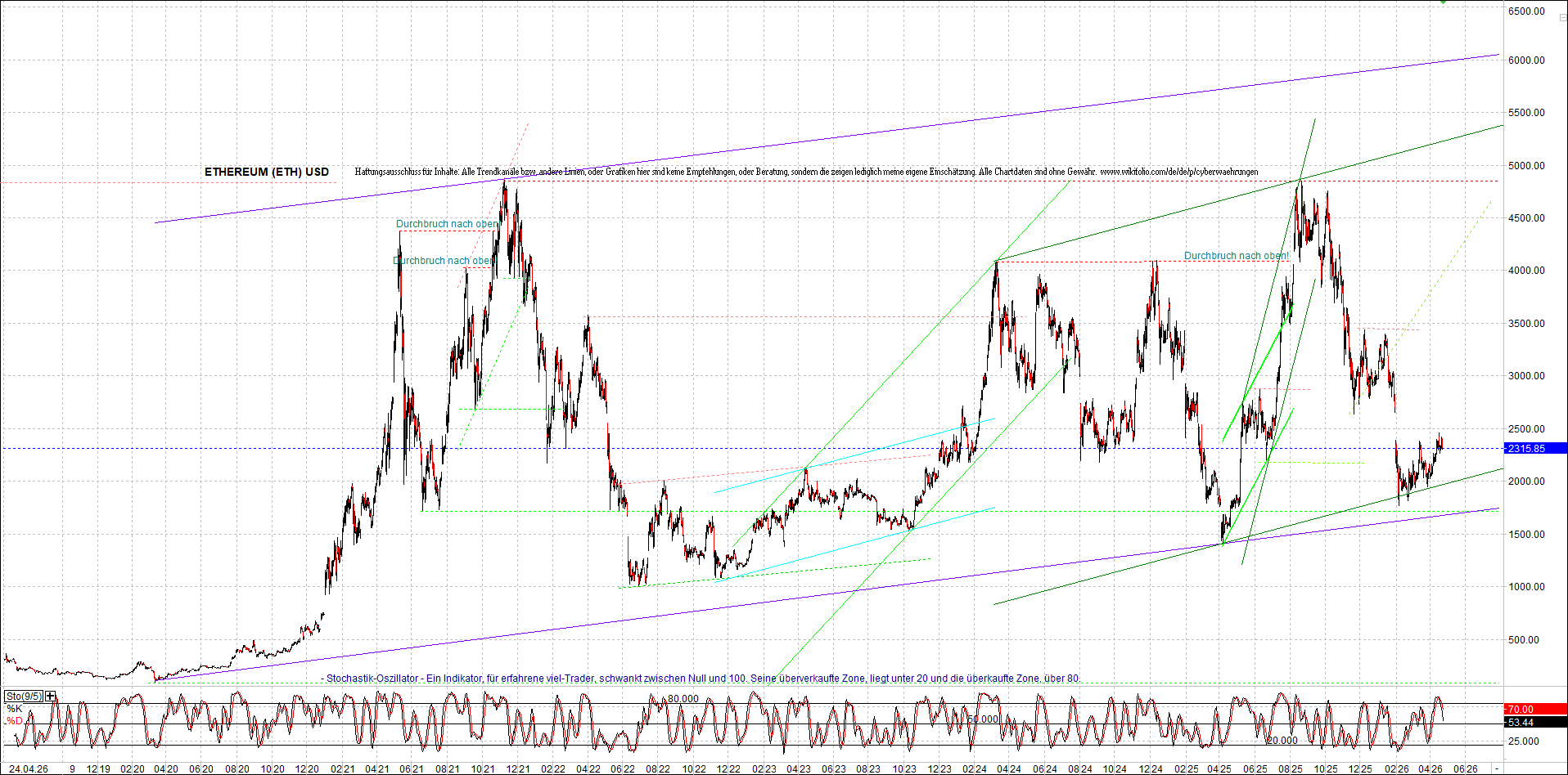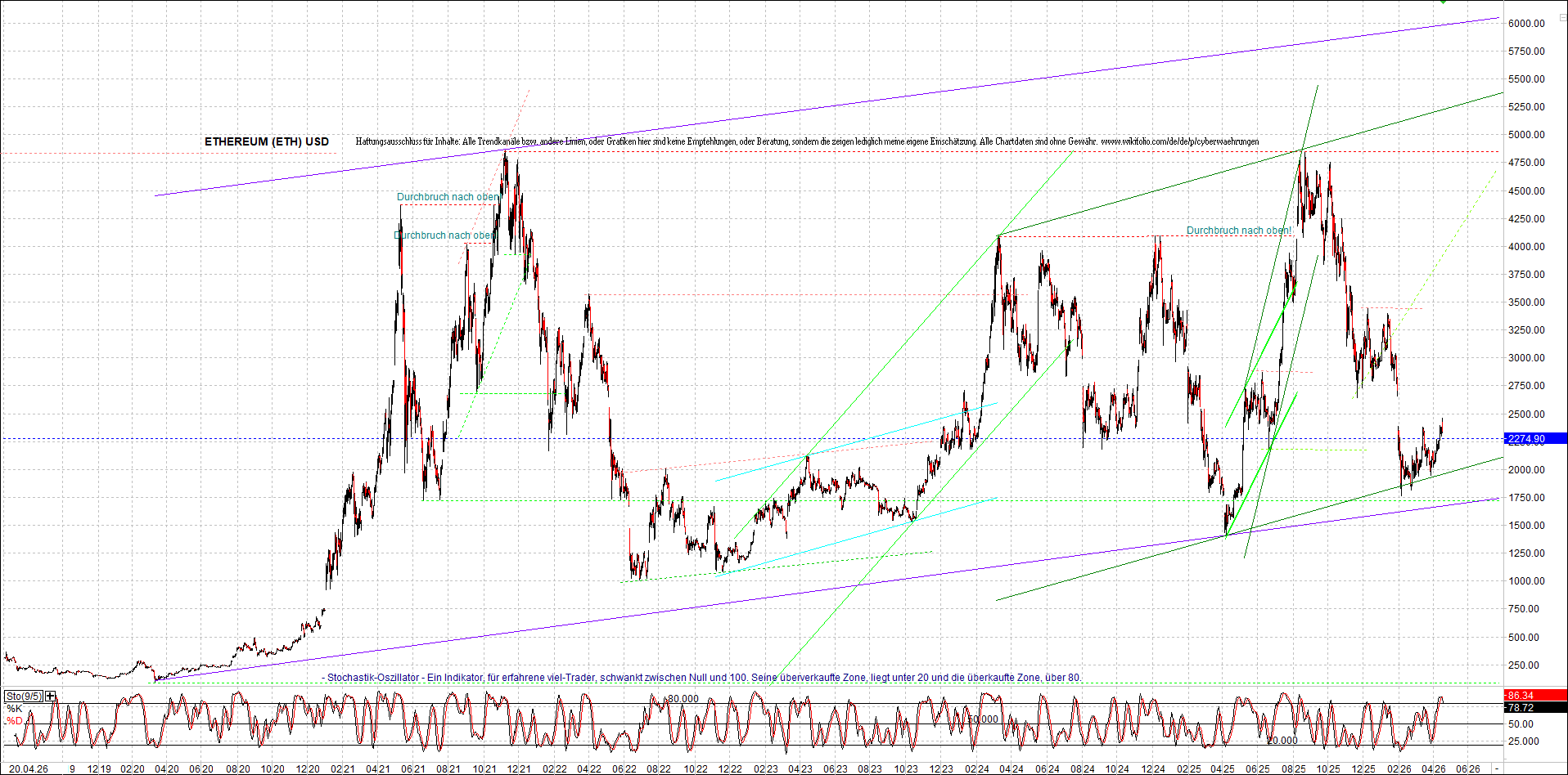 Mehr über die 4 und auch weitere 3 wikifolio-Endlos-Zertifikate gibt es hier. Aber bitte da nicht erschrecken wegen den charts, weil die wikifolios sollten die original-performance so getreu nachbilden wie möglich, aber die charts bei wikifolio zeigen leider nur ein kleines Zeitfenster. Deswegen habe ich hier die entsprechenden langfristigen original-performance-charts reingestellt. Die kann ich auch gerne ab und zu aktualisieren. Die Trendkanäle bzw. andere Linien, oder Grafiken in diesem thread sind aber keine Empfehlungen, oder Beratung, sondern sie zeigen ausschließlich meine eigene Meinung.