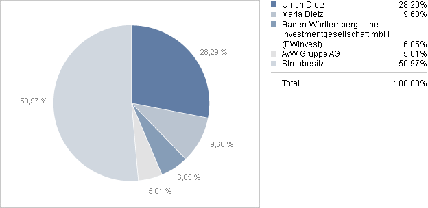 Interessant ist auch die aktuelle Aktionärsstrkutur. Die Dietz-Familie hält bereits fast 40% am Unternehmen - was ja auch kein Pappenstiel mehr ich. Der Einstieg der AVW hat mich als Anleger ebenfalls erfreut, denn wer die AVW kennt weiß, das Hr. Auer von Welsbach ein gutes Händchen bei seinen Investemts hat.