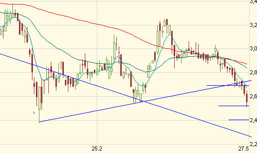 nächstes Ziel könnte durchaus das Jahrestief im Bereich um 2,45/2,50 Euro werden...