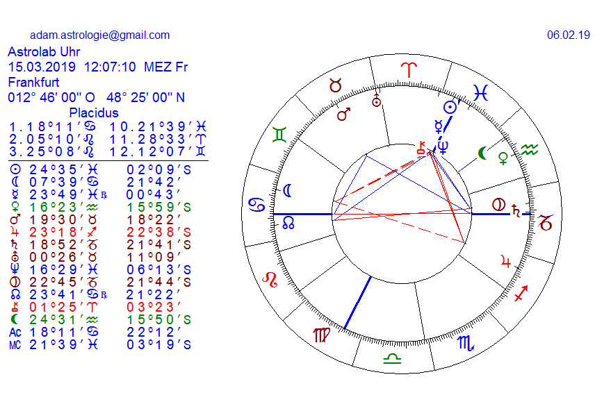 für alle meine Freunde der Astrologie und all jene die es noch werden mögen, stelle ich jetzt mal ein radix vom 15 März 19 rein, damit wir sehen wie sich die Trans zu ungunsten Macrons Horoskop enwickeln.