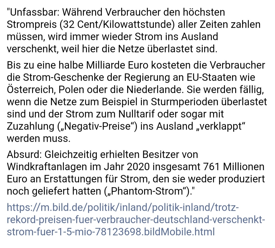 Die Milliarden sollen weiterfließen, so will es die Lobby, so wollen es die Profiteure, selbst dann, wenn dieses Land bereits am Abgrund steht und immer mehr Menschen sich die immer teurer werdende Energie kaum noch leisten können und immer mehr Industriebetriebe jetzt schon Produktionsunterbrechungen hinnehmen müssen, die ihre Anlagen und ihr Überleben gefährden.