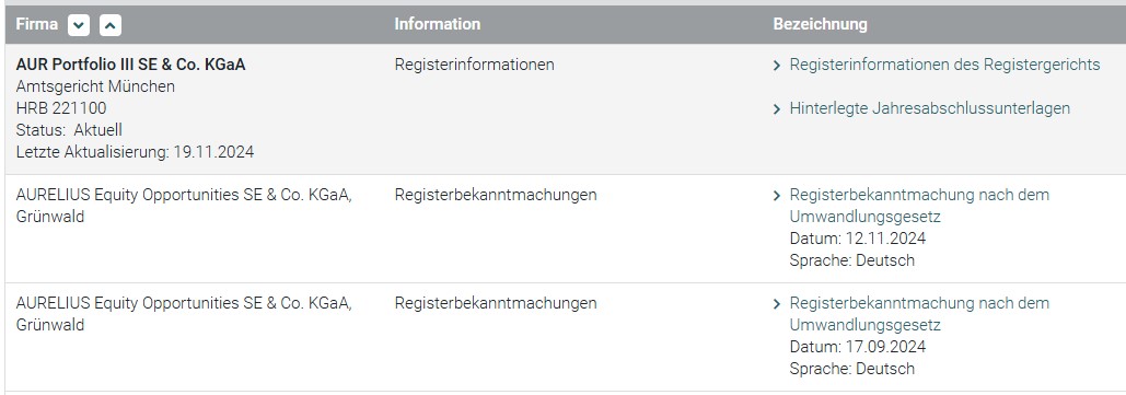 Fakt ist: Den Streubesitzaktionären werden diese Information systematisch und billigend einfach entzogen. Das ist auch eine gravierende Änderung des Segmentwechsels und der strategischen Neuausrichtung als Fond, unter neuem Namen "AUR Portfolio III SE & Co KG AG".