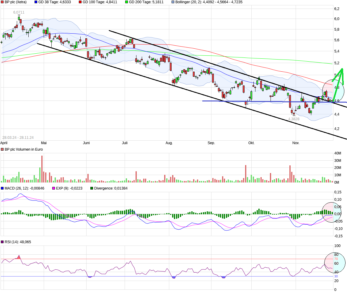 BP hat seit 2010 locker immer mal wieder das Potential um die 6,-€ zu überschreiten und wie man nun sieht, die 4,50€ (oder gar tiefere Kurse) zu testen.