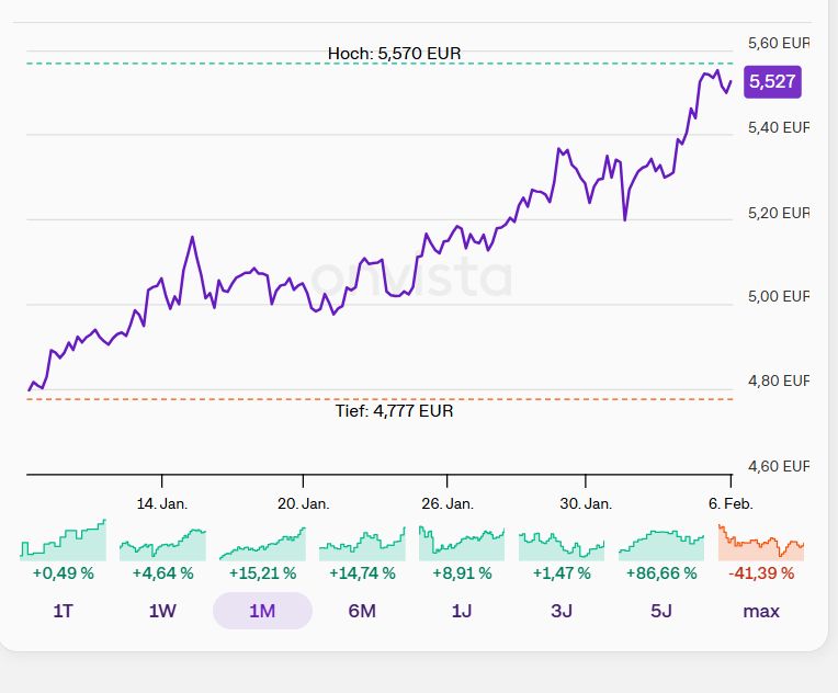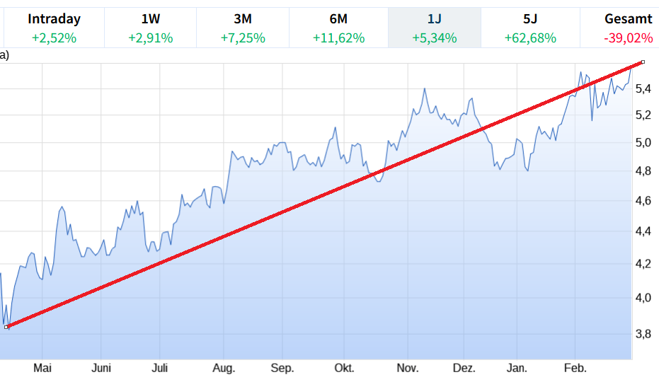 4,78 Euro huete im Kurs wieder knapp 5 % Minus