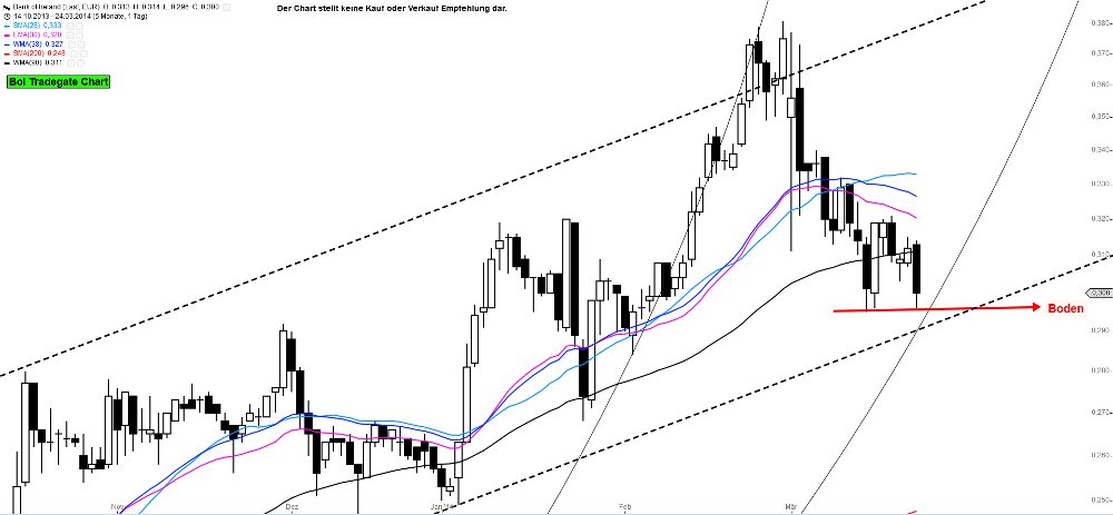 Sehe ich auch so.Vom Chart her gesehen könnten wir bis Ende Mai noch bis auf ca.0,50Cent steigen.