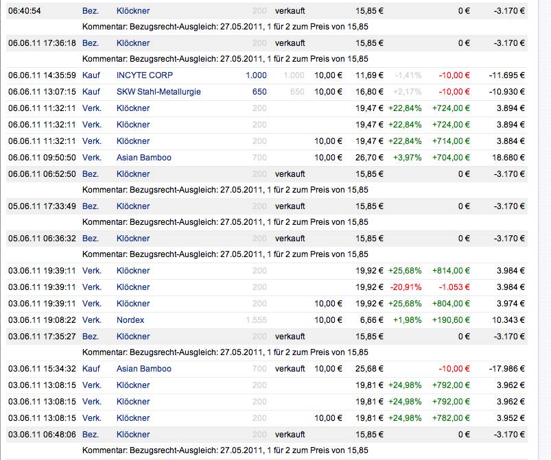Ich beobachte, dass in letzter Zeit *jeden Tag* einmal um ca. 6:30 Uhr und noch einmal um ca. 17:30 Uhr Bezugsrechte-Ausgleich für die Klöckner-Aktie in meinem Investordepot eingebucht wird. Ich will sie nicht! Es verzerrt ja das Spiel, bin schon auf Platz 9 des Investordepots deswegen, will ja aber eine ehrliche Platzierung haben. Bitte abstellen!
