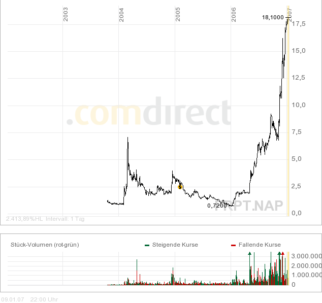 Das KGV ( G für Gewinn, gell!) lag vor dem massiven Kursansteig bei ca 5 , die Aktie ist also dramatisch unterbwertet.