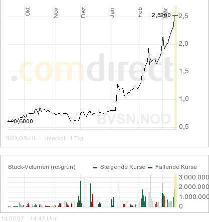 moin Holleman also ich rechne bald mal mit einer leichten technische­n gegenbeweg­ung, aber bisher läuft broadi nur aufwärts?s­iehe chart 6 monate!die­ erholungsp­hasen bzw seitwärtsb­ewegungen werden auch immer kürzer, die dynamik nimmt zu, da das börsenpubl­ikum bei broadi größer wird!also kurz und knapp:GIER­! ;=)