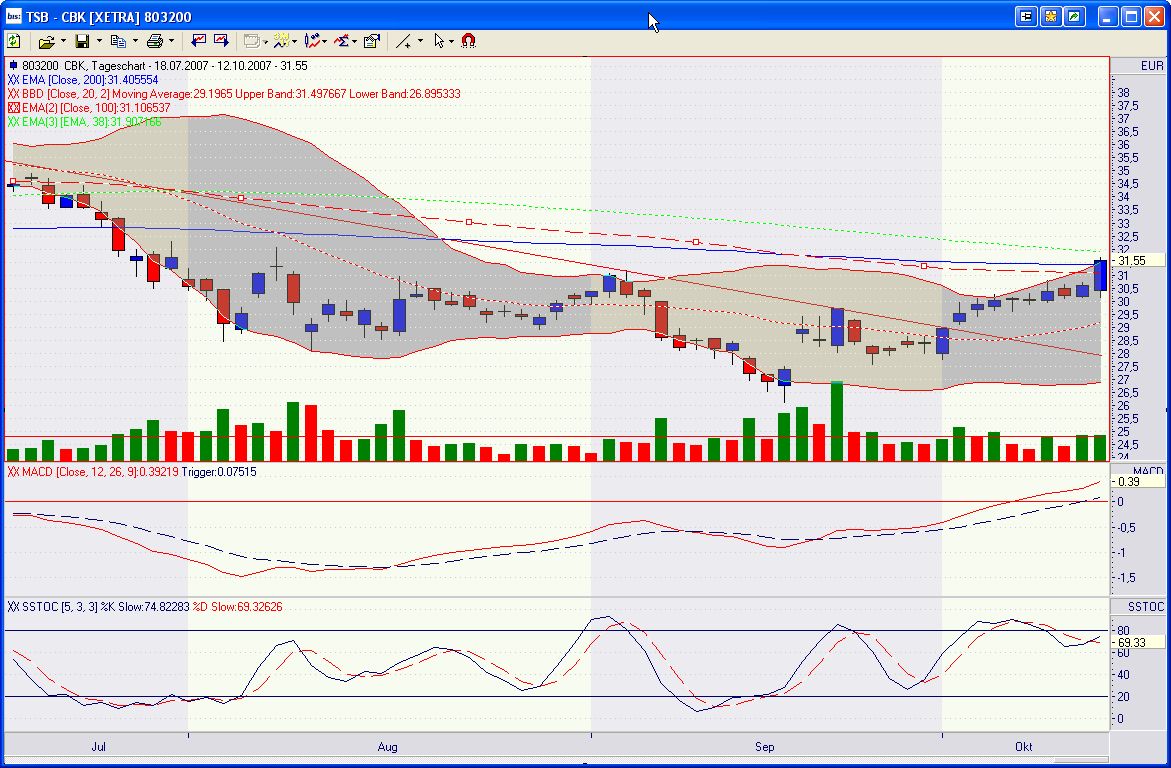 die Bankenkrise wird die Bereinigung im Bankensektor wieder beleben, das heißt, die Übernahmephantasien werden wieder angeregt. Die Übernahmewelle kam ohnehin auf Grund des teurer gewordenen Geldes etwas zum Stillstand, nun, da wieder billiges Geld für die Finanzierung von Übernahmen zur Verfügung steht, könnte die Welle wieder an Fahrt gewinnen. Warten wir es ab, mit den Q3-Zahlen wird sich die Spreu vom Weizen trennen und dann gibt es auch wieder Übernahmen, wenigstens Übernahme-Phantasien und dabei kam die Coba nie schlecht weg.