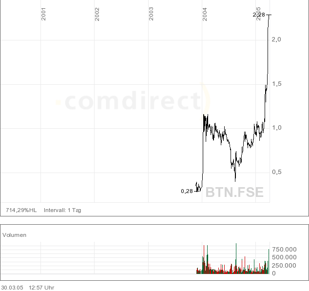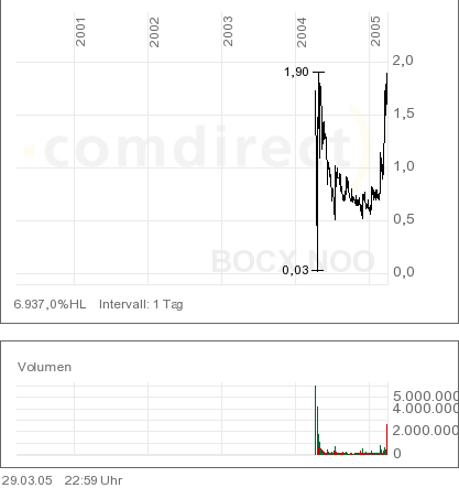 Zwischen 2005 spätestens 2006 wollte das Unternehmen damals seine Ziele erreichen, na ja wäre schön! Desweiteren zieht der Konjunkturmotor deutlich in den USA an, wieviele Zinserhöhungen waren es mittlerweile, 6 mal? Auch Centrex könnte bei anhaltener guter Börsenstimmung mal ein Zock Wert sein, vielleicht auch mehr? Ist halt OTC und spekulativ!