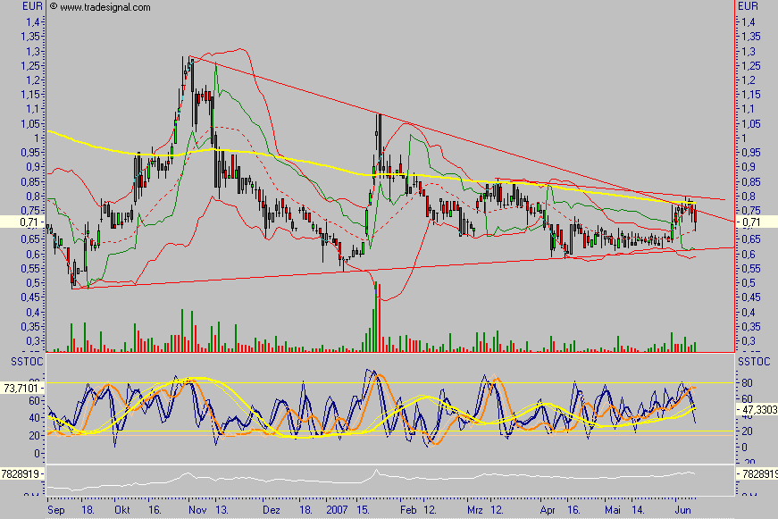 Börsenspinner kleine Range, zunächst seitwärts,­ am besten Ausbruch "per Schlusskur­s" abwarten, hilfsweise­ intraday wenn man merkt, daß es Anschlußkä­ufe gibt