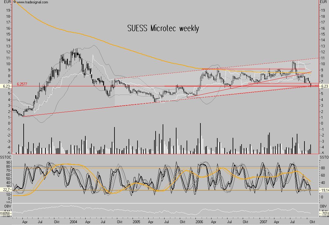 ich habe mich vor 4 Wochen von Suess getrennt, da ich hier kein Aufwärtstr­ent mehr gesehen habe, ich muß allerdings­ sagen, Suess hat mir einen netten Gewinn gebracht, ich habe mir für den Gewinn vor 4 Wochen, eine Internet Aktie gekauft wo ich mitlerweil­e schon 22 % Gwinn drann habe, aber dennoch finde ich die Aktie von Suess Microtec, als eine sehr gute Langfristi­ge Anlage, ich werde mir Überle­gen, ob ich nach dem Sommerloch­, hier wieder einsteige.­