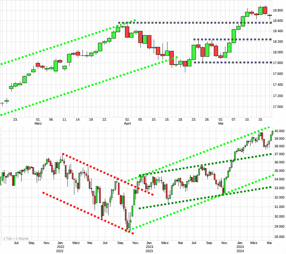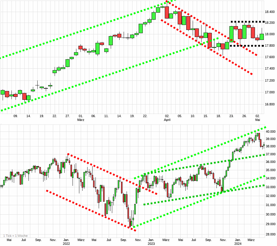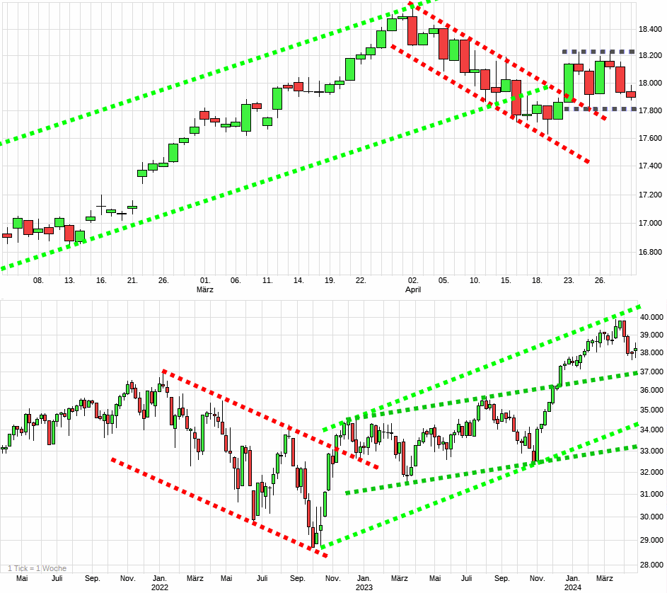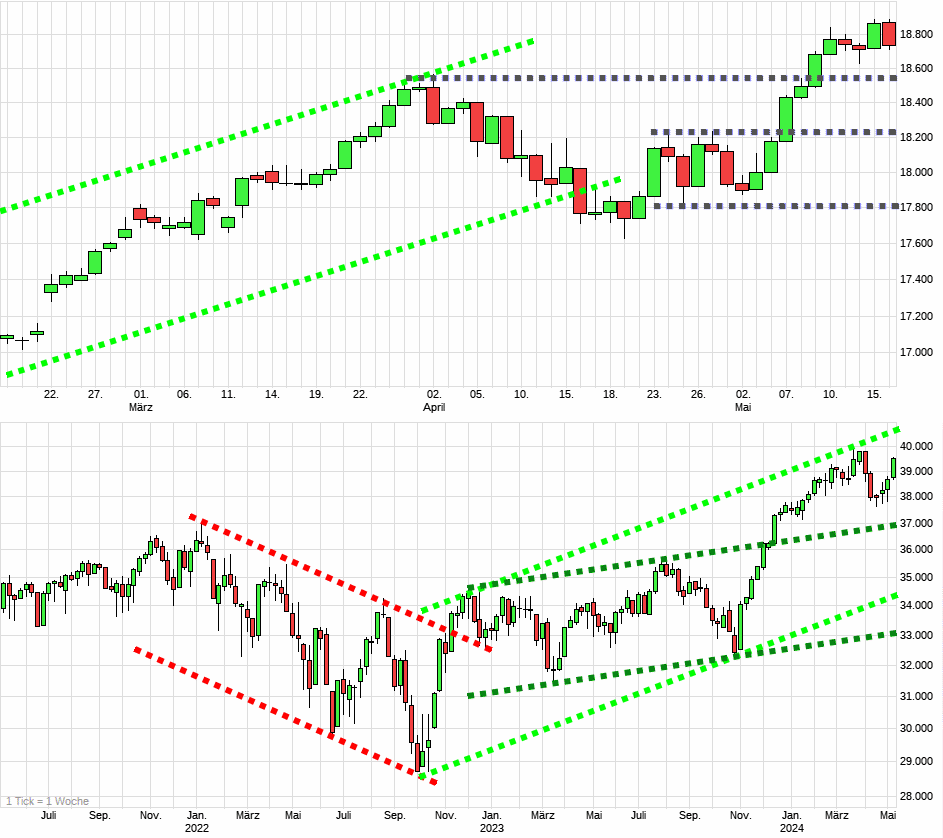 Sehe Deine Charts....und wie ist die Meinung zu einer Korrektur? Bis wohin würde sie sich ausdehnen? Bis jetzt ist jedenfalls nichts davon zu sehen...und Mai bereits in Endphase.