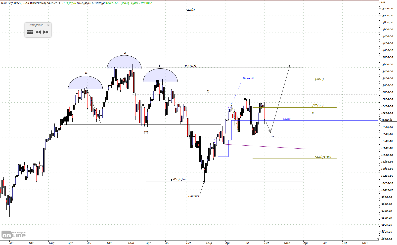 Kurzfristig die Erholung seit 11900 und das Ende.