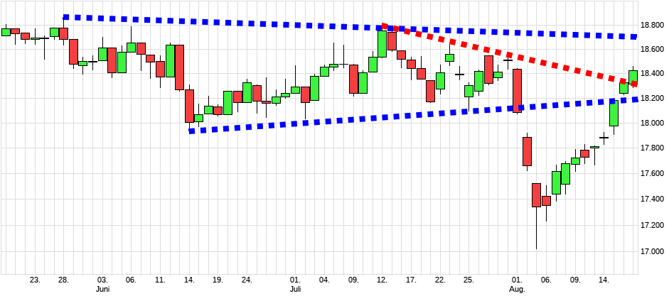 Er ist punktgenau am Trendkanal bei 17025 aufgeschlagen.