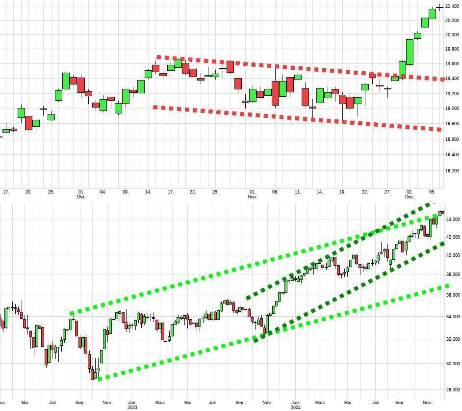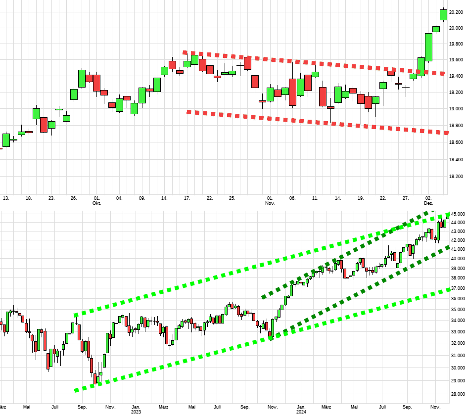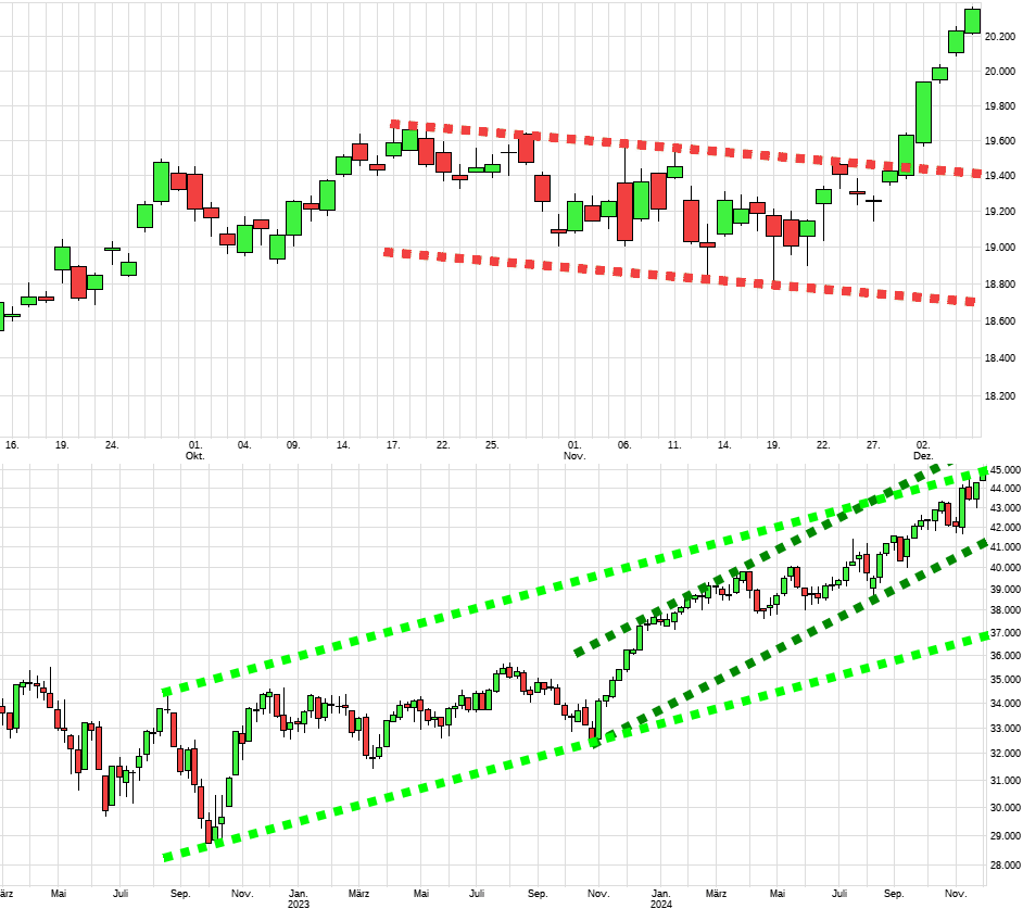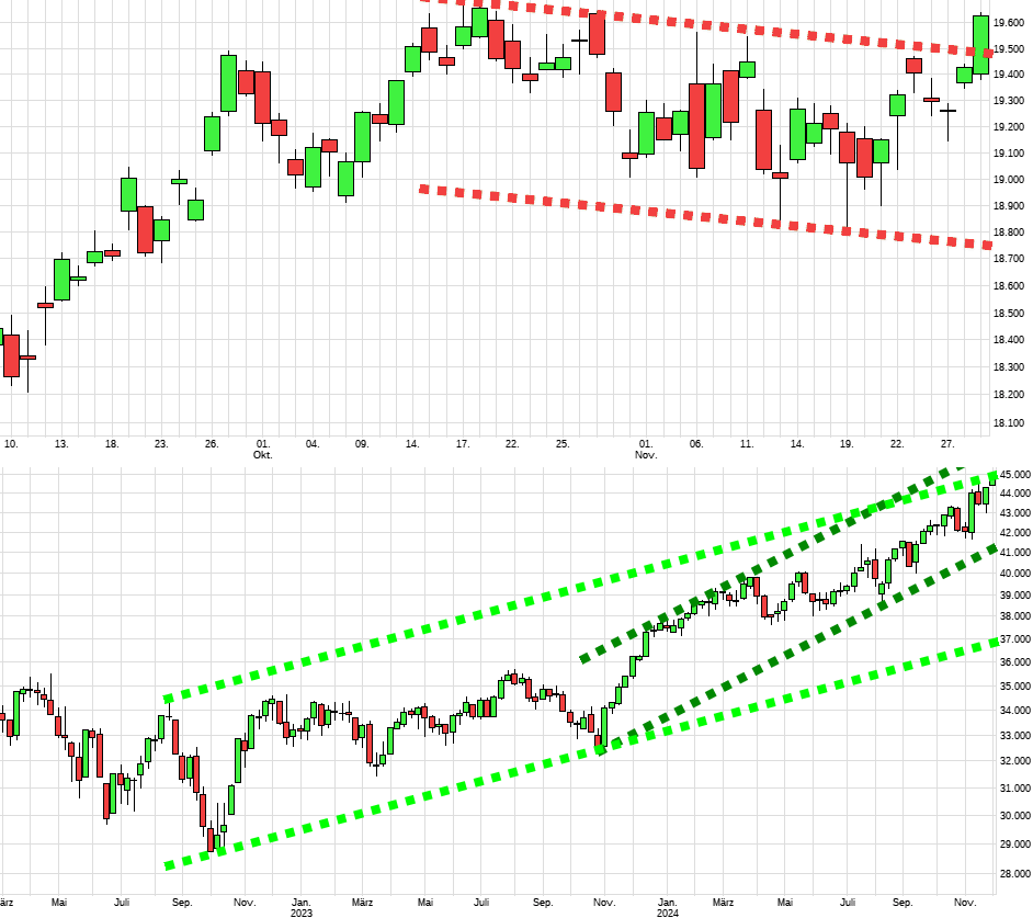 19400 wird kaum getestet werden dafür ist der Anstieg zu gross. Vor allem hatte ja die Seitwärtsbewegung alle abgeschüttelt das hatte gereicht. Wie wir es bei Bitcoin und Gold gesehen hatten. Da wurde der Ausbruch auch nicht mehr getestet da die monatelange Zermürbungstaktik seine Wirkung nicht verfehlt hatte.
