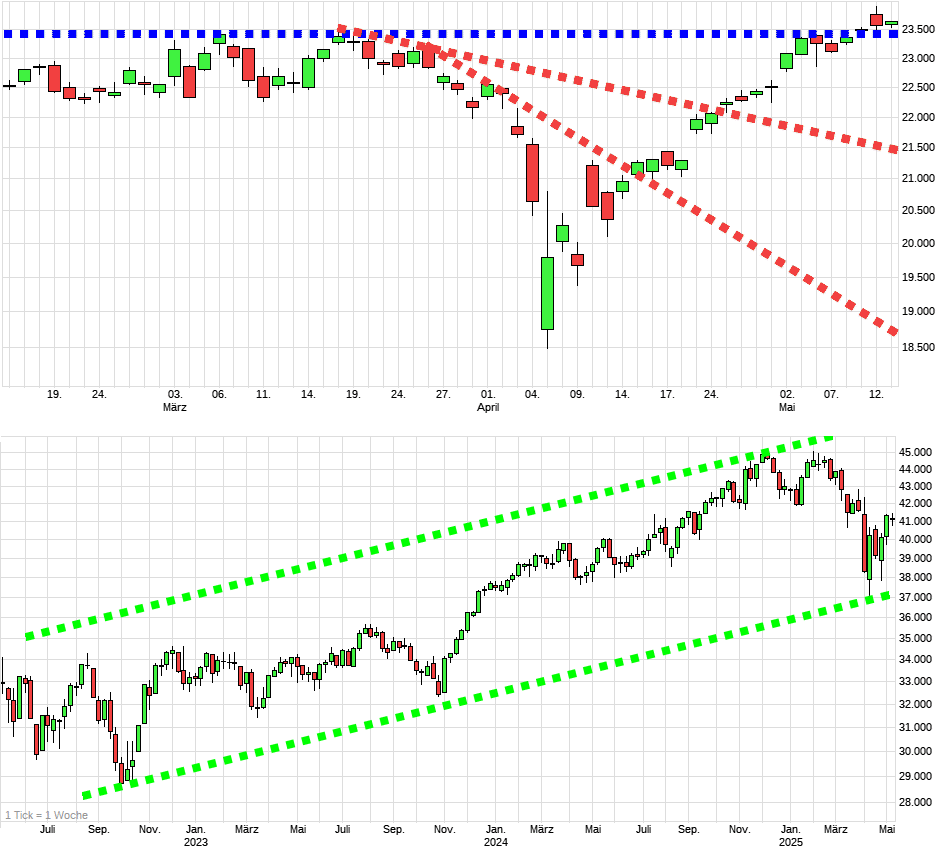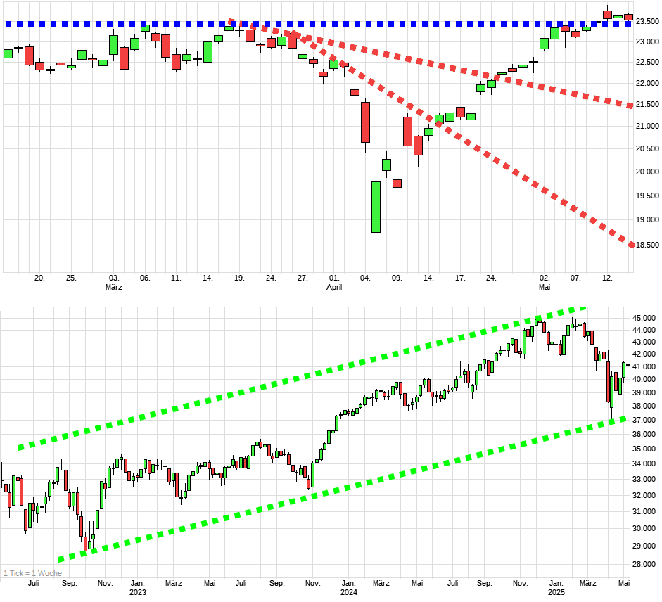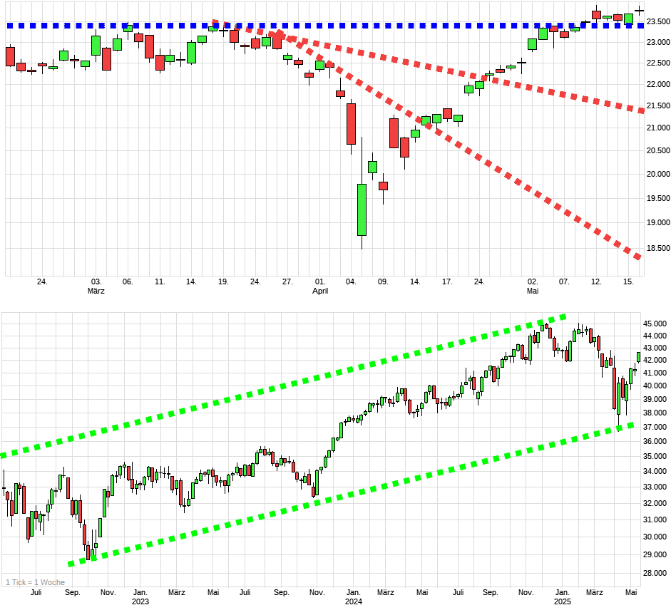 gleich dynamisch darüber springen ist natürlich schwierig. Positiv ist, das Gap bei 22600 wurde nicht geschlossen. Wenn er oben raus will müssen alle erst wieder verunsichert werden. Der DAX dreht völlig durch, DOW hat nicht mal die Hälfte aufgeholt und Dax steht bereits vor neuen Hochs. Wenn der DOW seine Hochs ereicht ist der Dax dann bei 30000 ?