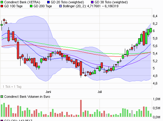 Durch den Kauf von ebase haben sich die Ertragsrückgänge bei comdirect kaum bemerkbar gemacht. Beim Unternehmen bleibt man hinsichtlich der Prognose für das Gesamtjahr vorsichtig. Die Analysten bezeichnen die Prognose als konservativ. Die Unternehmensspitze rechnet mit einem Vorsteuerergebnis von mehr als 70 Millionen Euro. Die Analysten vermuten aufgrund der derzeit besseren Börsenstimmung, dass die Prognose eventuell angehoben werden muss. Sie gehen ferner davon aus, dass die Dividendenrendite bei 6 Prozent liegen könnte.