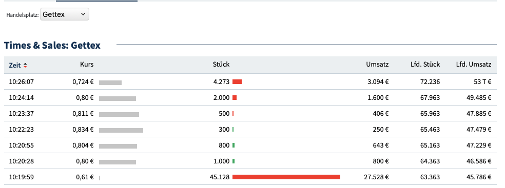 übrigens 45.128 Stücke auf Gettex. zu 0,61 einer geschmissen
