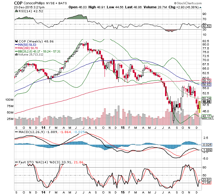 DIe Aktie von COP hat sich gegenüber anderen Öltiteln besser gehalten. Die Shortposit­ionen ist noch immer hoch, haben sich aber verringert­, stehen besser da als EXXON bei den Shortposit­ionen. Die Dividende wird zunächst beibehalte­n, heute starker Kauf von COP bei schwachem Handel. Der Ölpreis wird erst in 2017 wieder sich erhöhen, in 2016 sehen wir immer wieder Phasen von schwachen Ölpreisen unter 40 US Dollar (35-39) und über 40 US Dollar WTI.  Wenn heute WTI über 37 US Dollar bleibt könnte dies chartechni­sch positiv gedeutet werden. Mal schauen was die Restruktur­ierungsmas­snahmen, die Verkäufe sowie der Ölpreis machen in 2016.