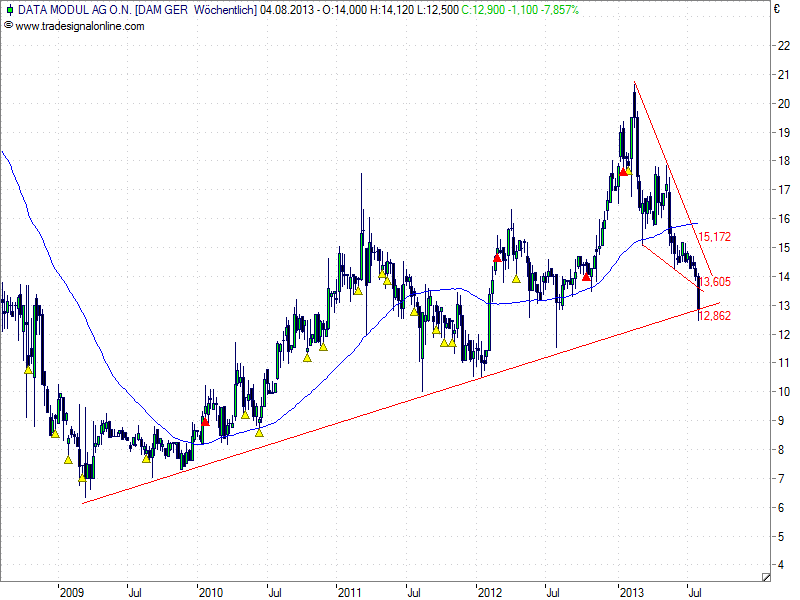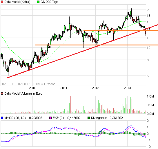 Ich bin mir bewusst, dass es solche Chancen bei relativ starken Unternehmen nur in etwas schwierigeren Zeiten gibt, wobei ich bei Data Modul momentan keine echte Krise sehe, sondern die Ergebnisentwicklung in 2013 nachvollziehbar zu sein scheint.