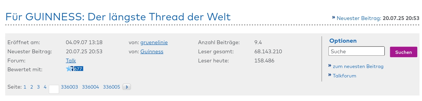 Mich interessieren die Klickzahlen auch nicht, aber wenn man sich die hohen Klickzahlen einiger Threads ansieht und diese dann im Zusammenhang mit den Postings betrachtet, dann stellt sich schon die Frage: wer klickt da eigentlich ? -- aber ein Link zu den Threads kann sich natürlich überall im Web befinden.