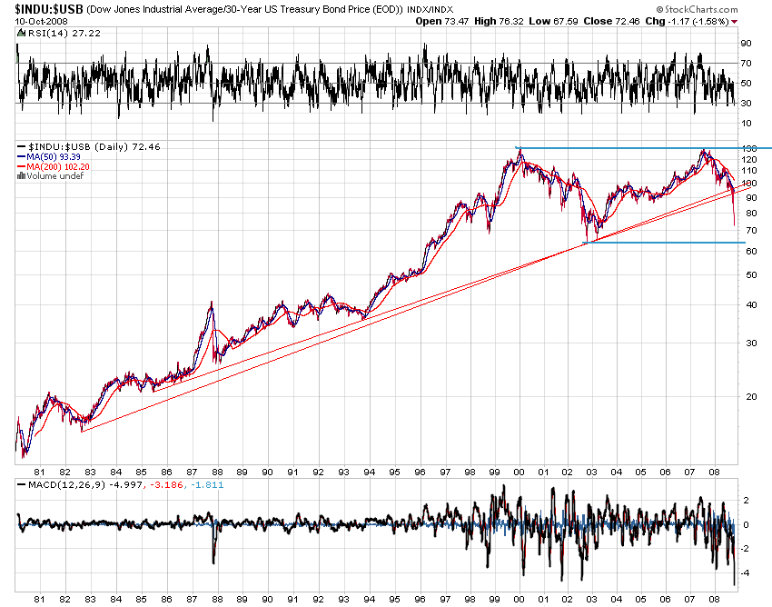 Hier und in einem Folgeposting zeige ich zwei Ratiocharts, die den DOW ins "rechte Licht" setzen. Es kann kein Zweifel daran bestehen, dass die Assets in der Phase 2002/2003 bis 2007 inflationär aufgebläht waren (schwacher $, billige Kredite, "Liquidität").
