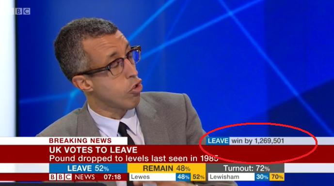 heute ist der 24 Tag des Monats zählt mal alle die Zahl zusammen die für Leave gestimmt haben, dann könnt ich vertehen in welcher Matrix ihr lebt und das über Zahlen kommuniziert wird..und diese Zahlen sind sehr sehr schlechter Bedeutung