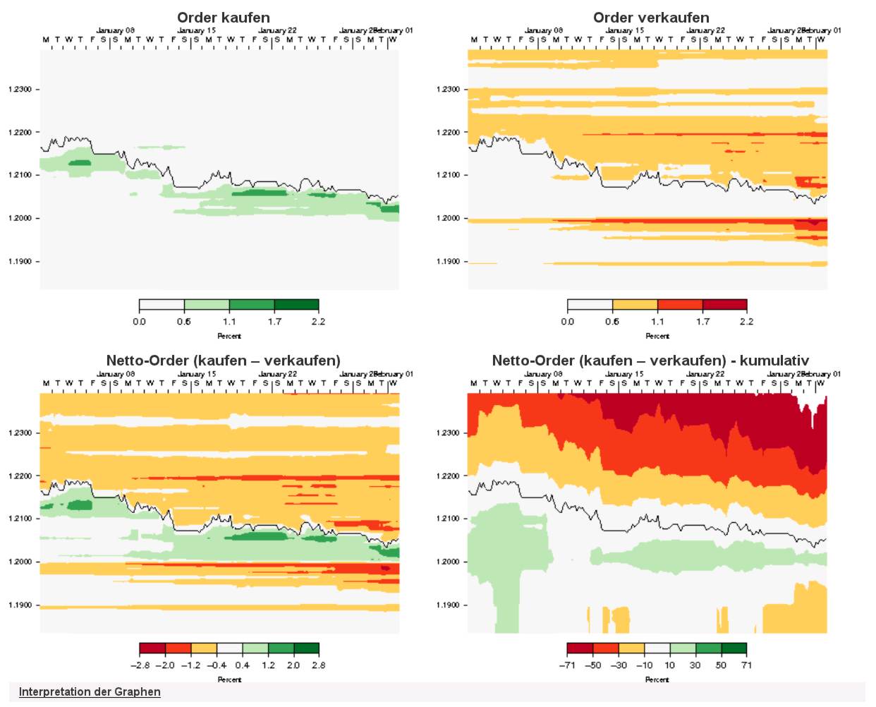 Dort ist normalerweise zu sehen, wie die augenblickliche Verteilung der Limite bei Oanda aussieht. Heute früh war die Mehrzahl aller Sell-Orders (Sell-Stop und Stop-Loss) ziemlich genau bei 1,198. Das wird nicht billig, wenn die Marke angekratzt wird und alle Retailer auf einmal losfeuern. Kann mir vorstellen, dass es bei anderen Retailern ähnlich gelagert ist.