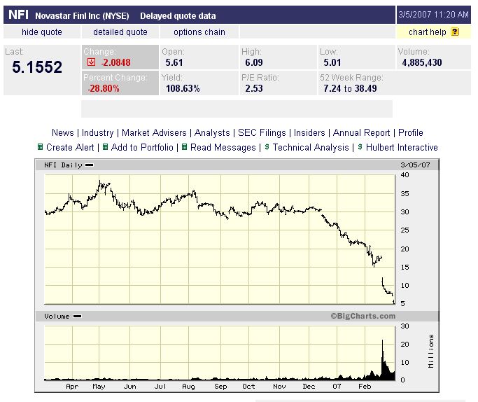 Der zweite "sinking Star" am Subprime-Markt neben New Century. Als die Aktie noch ein REIT (Immobilien-Trust) war, wurde der gesamte Gewinn ausgeschüttet. Nun ist der REIT-Status nicht mehr haltbar - der Kurs auch nicht...
