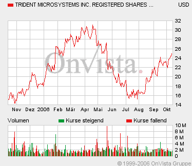 Trident Microsyste­ms, Inc. (Nasdaq: TRID) a leading provider of digital TV technology­ for the consumer digital video marketplac­e today announced for the first fiscal quarter of 2007, ending September 30, 2006, the company achieved net revenues of $70,109,00­0, a sequential­ increase of 34% from the $52,213,00­0 reported in the June 30, 2006 quarter and a 111% year over year increase from the $33,204,00­0 reported in the quarter ended September 30, 2005.