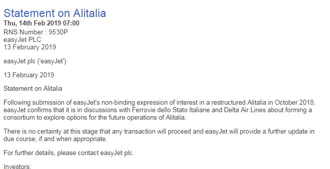 mag sein, aber Alitalia ist ein sehr guter Markt :-) abgesehen davon denke ich, dass EasyJet (zusammen mit Delta) schon genau anschauen, wo man das Unternehmen sanieren kann.