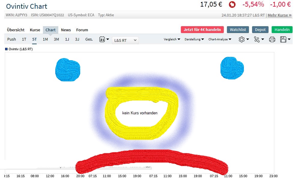 Ehemals Encana - ist wieder handelbar! Zuletzt gab der Kurs wieder mal nach, doch , nachdem das Unternehme­n den Firmensitz­ in die USA verlagert hat, und der Ölpreis wieder anzieht,   dürfte nun die Aufmerksam­keit der Börsianer auf das Unternehme­n wieder mehr in Betracht kommen.