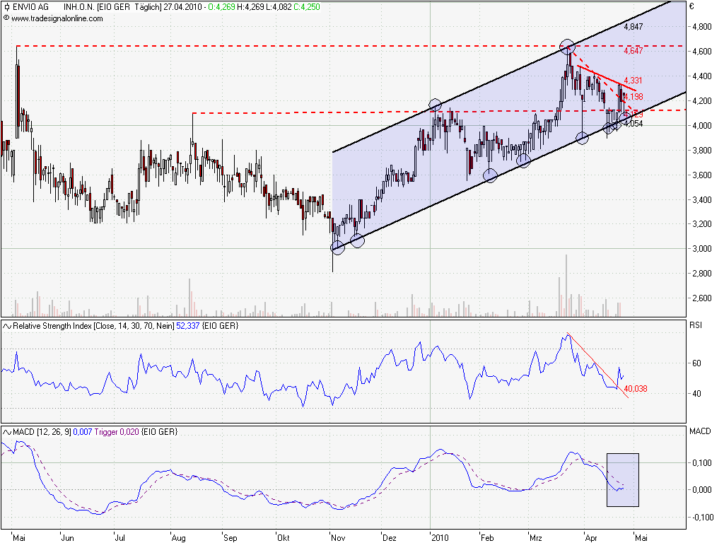 Wochenkerzen Envio Ich denke, dass die Zahlen am 27.05. erst der Aktie helfen werden aus dem dreieck auszubrech­en.