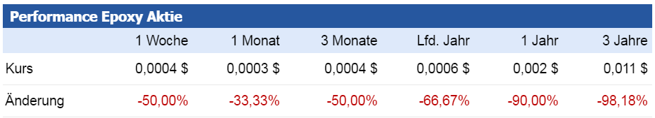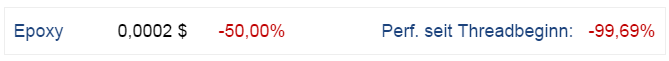 "Als ich auf Epoxy aufmerksam wurde waren es 171 Mio Shares, jetzt sind es schon 236 Mio. Und was hat es gebracht. Nix." (14 Monate her ...)