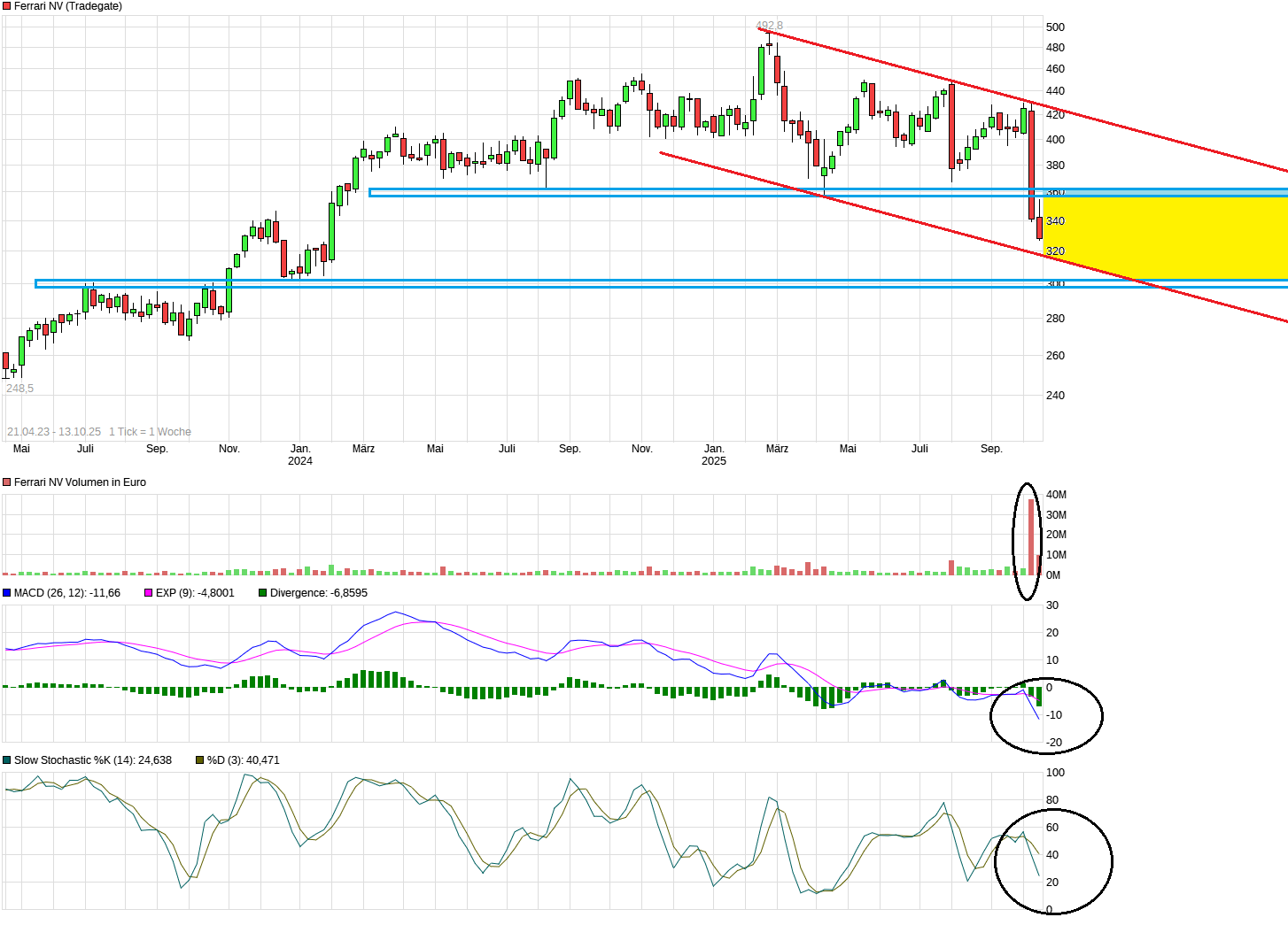 Ferrari fällt durch – Aktie zweistellig im Minus - https://www.deraktionaer.de/artikel/aktien/...-im-minus-20388096.html "....Ferrari hat gepatzt. Der Luxusauto-Hersteller hat mit seinen selbst gesetzten Mittelfristzielen die Erwartungen der Investoren klar verfehlt. .....Ferrari blieb mit seinen Gewinnplänen bis zum Ende des Jahrzehnts spürbar hinter den Hoffnungen der Anleger zurück. Ferrari peilt beim Ergebnis vor Zinsen, Steuern und Abschreibungen 2030 einen Wert von mindestens 3,6 Milliarden Euro an ......Experten allerdings hatten bisher im Schnitt 4,3 Milliarden Euro deutlich höhere Erwartungen an die kommenden Jahre..."