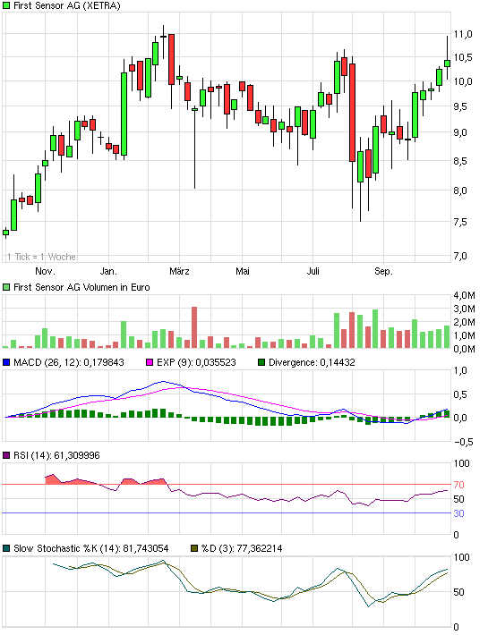 Die Aktie von First Sensor notiert aktuell mit einem Minus von 0,22 Prozent bei 10,22 Euro. (24.10.2011/ac/n/nw)