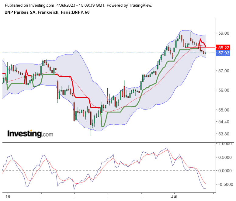 An der Börse kamen die Neuigkeiten gut an. Experten lobten die Kostenkontrolle. Die im Eurozonen-Leitindex EuroStoxx 50 notierte Aktie legte in der Spitze bis mehr als vier Prozent zu. Zuletzt zog der Kurs noch um zweieinhalb Prozent auf 59,50 Euro an. Damit setzen die Papiere ihre jüngste Erholung fort. Seit dem Jahrestief Mitte März stieg der Kurs um 27 Prozent an. Mit einem Börsenwert von knapp 74 Milliarden Euro ist BNP Paribas die wertvollste Bank der Eurozone.