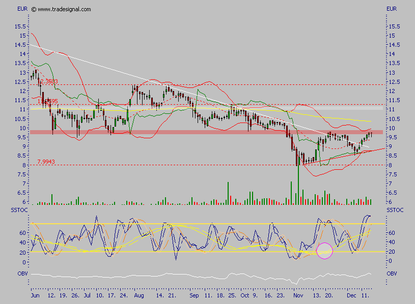 Soweit ich das beurteilen kann, sieht's charttechnisch auch ganz gut aus (steigendes Dreieck?), so dass beim nächsten Mal vielleicht die dicke Order bei 9,75 fällt und es nach oben geht - Kursziel ca. 11,20?