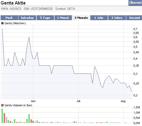 ich bin wirklich froh, dass es diesen thread gibt. aber bei aller liebe zu genta, "durchhalteparolen" ist ein sprachliches werkzeug, das bei aussichtslosen situationen sehr gerne genommen wird. - ich zocke nicht wirklich lange an den börsen dieser welt, aber eins habe ich vom ersten tage an lernen müssen; nie ohne Stop-Loss und meiner ist bei 0,20 .