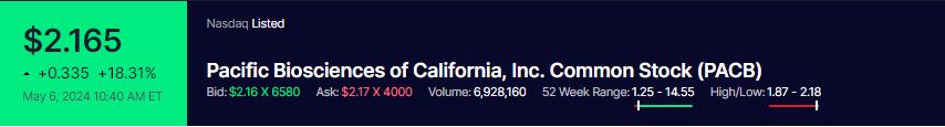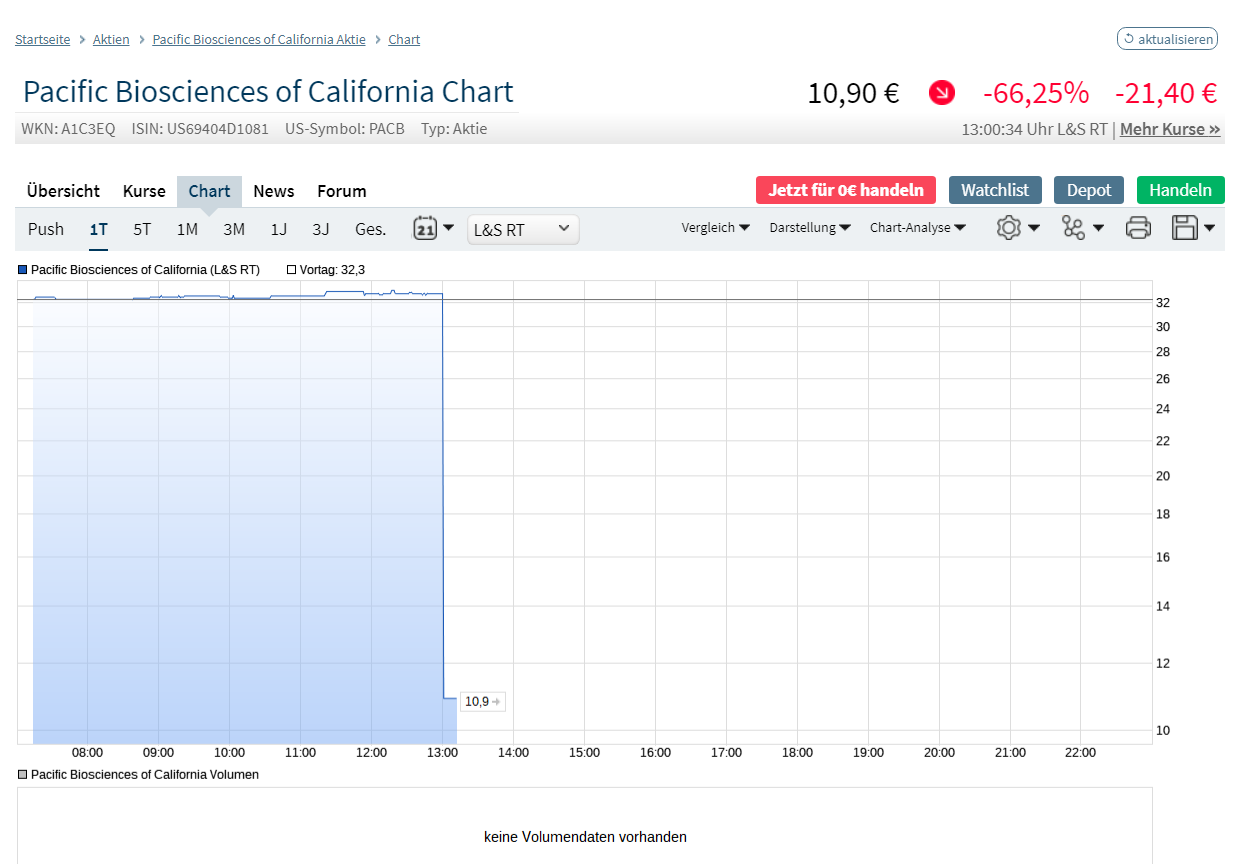 Auf anderen Börsenplätzen oder aber auch auf https://www.ls-tc.de/de/aktie/pacific-biosciences-of-california-aktie ist dies nicht zu sehen. Es handelt sich also um eine fehlerhafte Übertragung, warum auch immer.