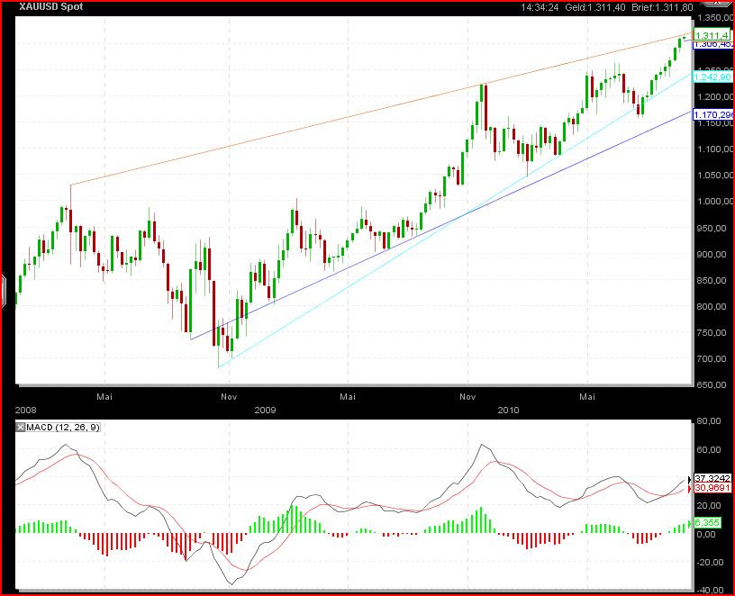 recht unwarscheinlich, dass beim Gold das TH in der nächsten Zeit geknackt wird, mein Einstieg bei 1314 somit mustergültig...*schulterklopf* SL also auf TH