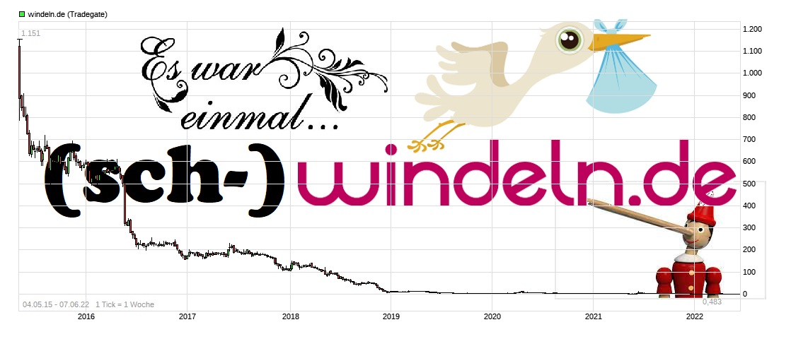 Und wenn nicht am 4. Juli , dann eben als St. Nimmerleinstag. Wenn man sich bei windeln.de auf eine Sache verlassen kann, dann die Nichteinhaltung von Aussagen/Versprechen. Die Könige der faulen Ausreden und windigen Durchhalteparolen halten weiter die Anleger für dumm und erzählen weiter das Märchen von den beiden ominösen Chinesen. Vermutlich ist ein Sack Reis in die falsche Richtung umgefallen oder man wartet auf den dritten Chinesen mit dem Kontrabass. Aber mit Sicherheit ist nicht Covid Schuld. In China läuft doch alles längst wieder. Nur die beiden Phantasie-Chinesen von windeln.de werden wohl weiter unter Verschluß gehalten, oder wie?