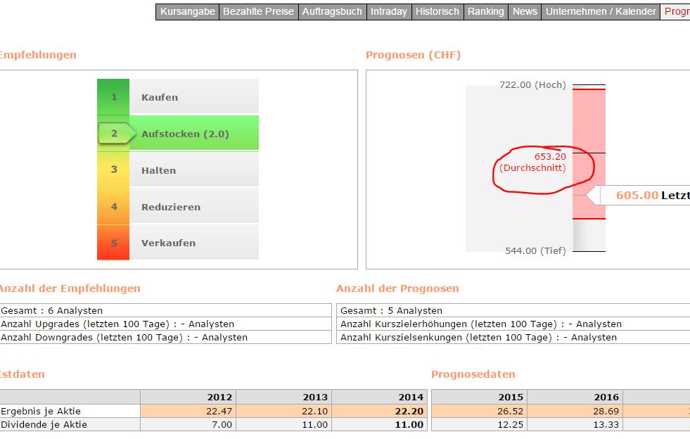 Durchschnittsziel der Analysten liegt bei 639.4 CHF