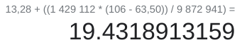 13,28 + ((1.429.112 * (106 - 63,50)) / 9.872.941)