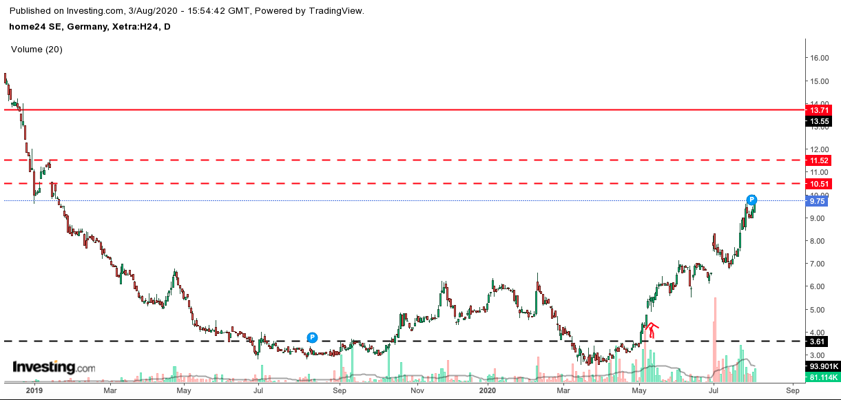 Home 24 - Boden erreicht "dank" Corona? Online-Möb­elhändler,­ von Rocket Internet an die Börse gebracht.