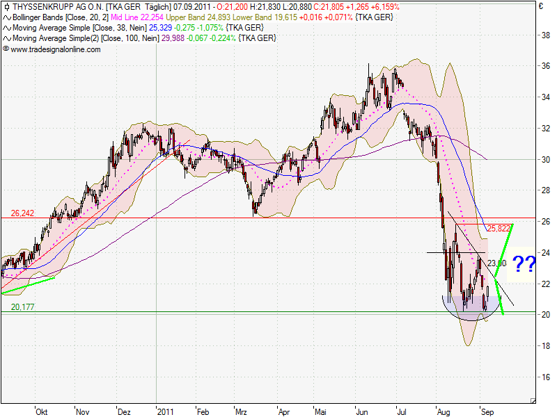 " Charttechnisch besteht die Chance einer "kleinen" Erholung, bis zum ersten Widerstand bei ca. 24€. Sollte es darüber gehen, bestünde die Chance auf einen weiteren Anstieg bis 25,82€.