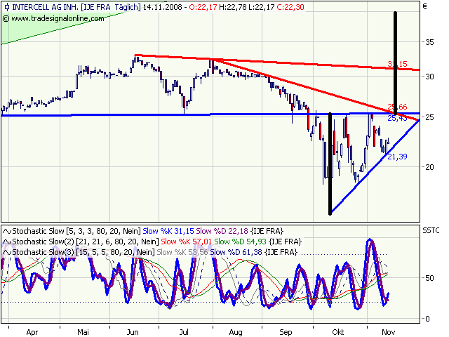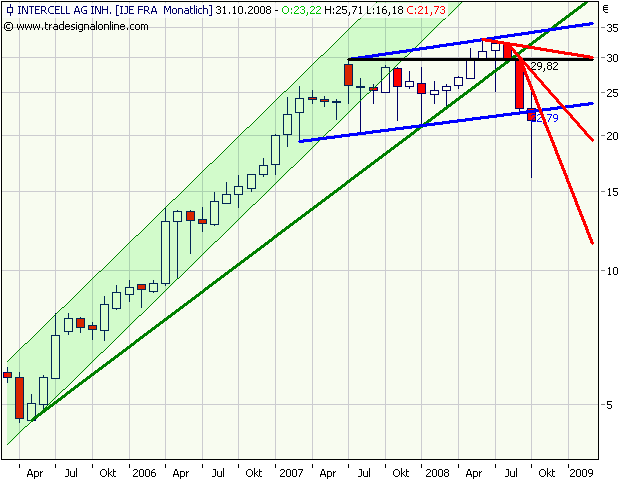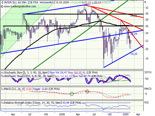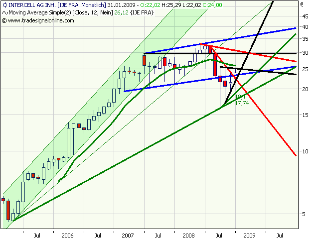 Intercell kämpft sich aus dem Abwärtstrend des 2. HJs 2008 heraus. Dem heftigen Einbruch der letzten Woche folgte ein genauso heftiges Reversal. Sollte bis Monatsende der Kurs in ähnlicher Gegend oder höher notieren, dann wäre das ein starkes Zeichen.