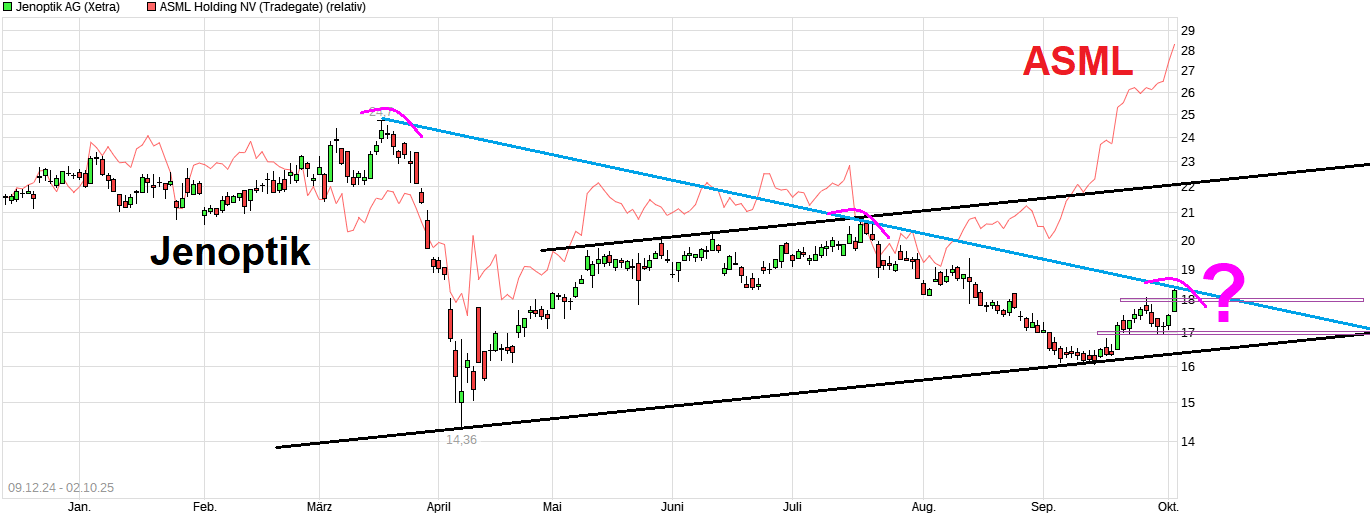 Jenoptik-Umsatzziel für 2025 erscheint wegen ASML-Warnung ambitioniert 18.10.2024 - https://www.n-tv.de/wirtschaft/der_boersen_tag/...rticle25300245.html